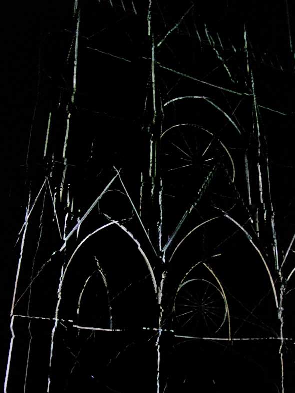 "M" de lumière sur la façade gothique de Notre-Dame de Reims