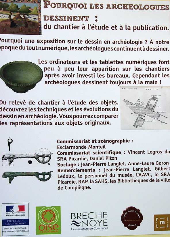 Jusqu’en mars 2013 le Musée Archéologique de l’Oise présente une exposition sur un thème peu souvent abordé dans les musées archéologiques, celui du dessin en archéologie, du chantier à la publication.