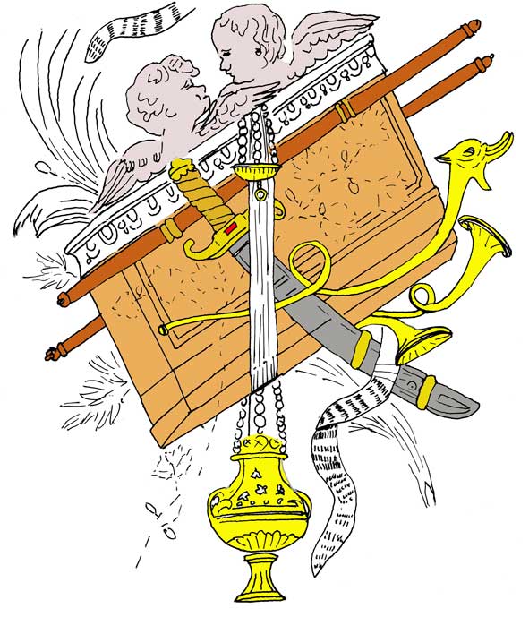 Autre questionnement : les trois motifs dessinés semblent être plutôt des gravures estampées à partir d’une ciselure initiale, tant les traits sont fins et quasiment impossibles à obtenir à la plume selon moi, sur ce type de papier. Rien ne prouve que le boîtier soit complet – l’ensemble des trois dessins et la plaquette d’or n’occupent que 1,3 mm sur les 2,56 mm disponibles- d’autres dessins ou plaquettes auraient pu également figurer. Les gravures originales étaient peut-être présentes dans ce boîtier, à moins qu’elles n’aient été utilisées ailleurs, ou même, qu’elles aient servi pour plusieurs tirages. En ce cas d’autres exemplaires de ce collier seraient peut-être conservés quelque part. Quant à la plaquette d’or dans laquelle est découpée la coulée de sang, pourquoi avoir choisi le morceau poinçonné de l’aigle certifiant l’or ? Serait-ce à nouveau un renvoi vers l’évangéliste Jean dont il est le symbole ? C’est plus que probable ! Le fond du dessin à la coulée de sang figure également une croix qui n’entame pas les contours de la coulée, ainsi que deux fragments de cercle, le tout très discrètement exécuté. Le possesseur de l’objet ou le réalisateur se serait-il prénommé Jean ?