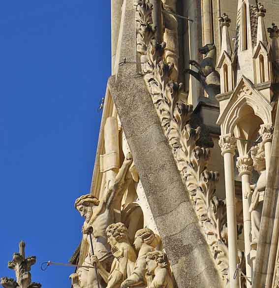 Ils se planquent derrière les gables des trois portails de la façade occidentale de la cathédrale Notre-Dame, jouent à cache-cache. De face on ne les repère nullement, il est nécessaire de se déporter au nord ou au sud de chaque gable pour les observer de profil ou de trois quarts, par avancée ou recul pour dégager le meilleur angle de vue. C’est çà ce zoo céleste !