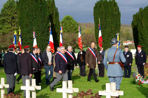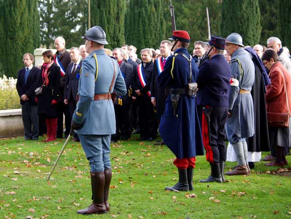 Commémorer encore et toujours n’a de sens que si l’évocation de l’Histoire, de cette histoire-là en tout cas, sert de leçon. Alors oui on peut fort bien déployer nos étendards, les abaisser « Aux Morts ! », faire déposer des gerbes par les autorités nombreuses qui se sont déplacées, Sous-Préfet, sénateur, député, maires, présidents d’associations patriotiques…si le but ultime est la Paix, à rechercher et trouver impérativement.