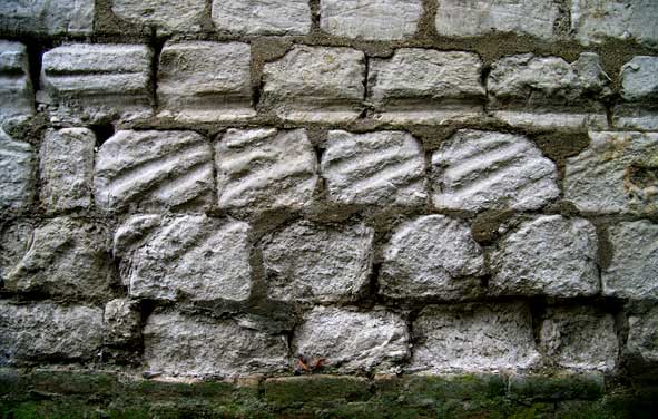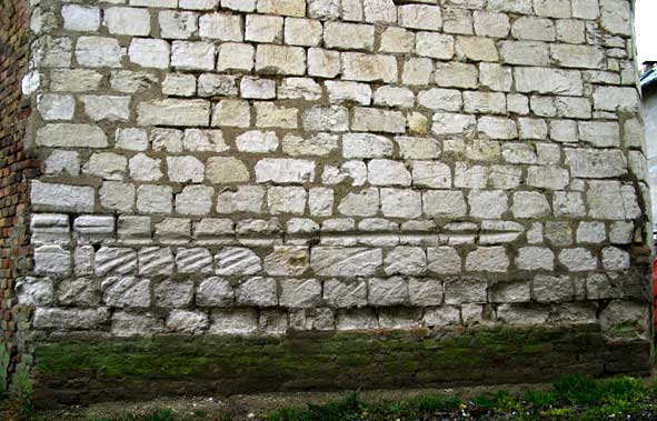 Un mur de craie en moellons équarris et appareillés. Comme bien d’autres murs de cette région de la vallée de l’Aisne proche de Rethel, quand la pierre est craie avant que de disparaître et laisser place au bois et torchis ou encore à la brique, ici en soubassement et en mur latéral.
