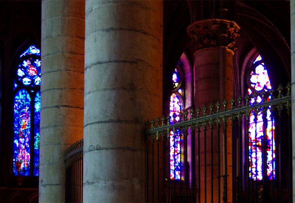 Implantée dans une légère cuvette que dominent des collines éloignées – Montagne Saint-Thierry, Monts de Berru, Montagne de Reims — elle montre encore les vestiges de ses remparts limités au sud par le cours tortueux de la modeste rivière la Vesle ainsi que par des marécages en voie d’assèchement. De nombreux édifices religieux, dont une majestueuse cathédrale dans laquelle les rois de France sont sacrés et à laquelle s’ajoutent Saint-Remi et Saint-Nicaise, de vastes proportions et gardiennes d’insignes reliques, manifestent à Reims la présence de l’Église, puissance spirituelle et temporelle qui en cette cité a plus d’influence que le roi.