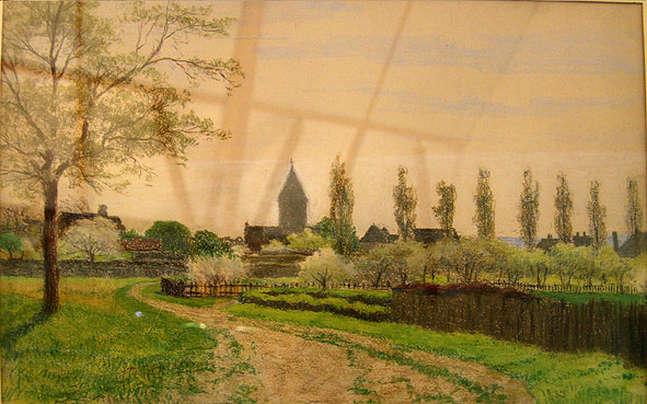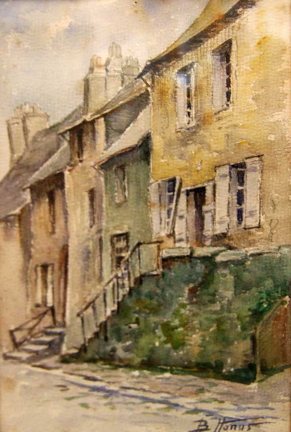 Parmi ces peintres le plus connu et du reste le seul professionnel est Léon-Henri Liévrat déjà signalé dans ce blog (tapez Liévrat dans le rectangle de recherche). Les autres sont des amateurs, talentueux le plus souvent, ayant eu un attachement certain à notre bourg, y ayant résidé, ou encore, pour l’un d’entre eux, ayant combattu ici lors de la Première Guerre mondiale. Nous mettons en relief chaque peintre par deux travaux subjectivement sélectionnés, sans donner la référence des prêteurs ni les détails de l’oeuvre. Cette note de blog, comme les autres, n’est pas une référence scientifique ni un catalogue et n’est là que pour donner à voir rapidement.